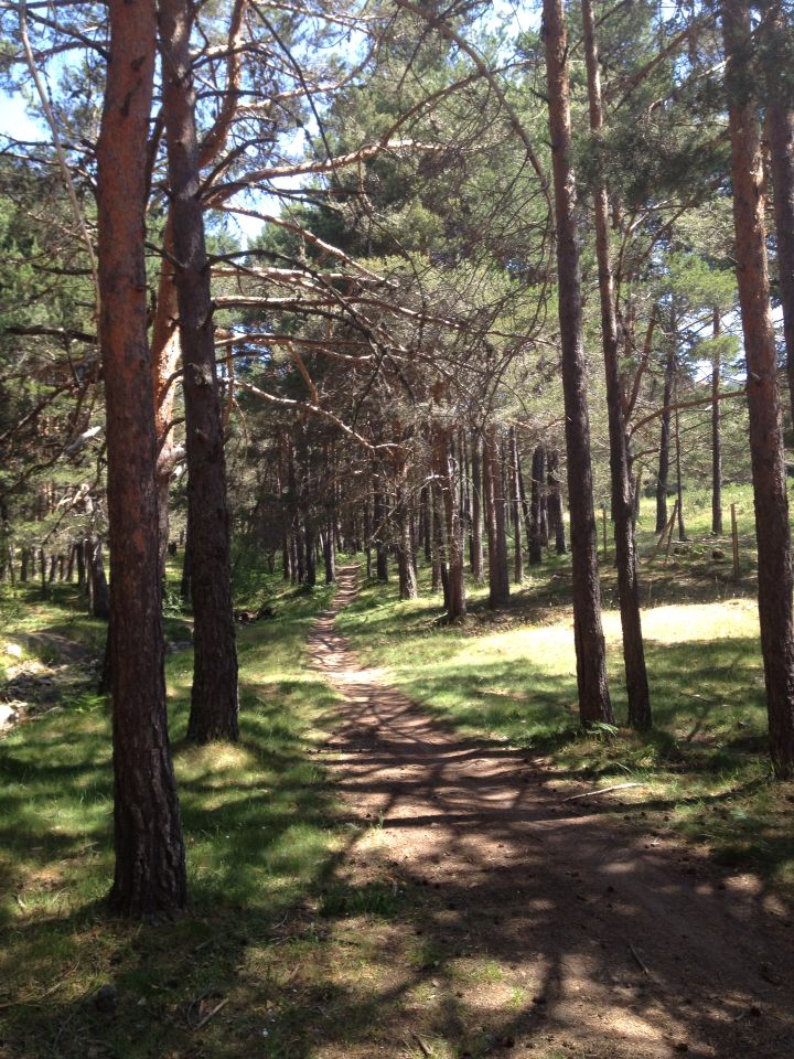 La Boca del Asno es un hervidero de gente, imagino que madrileños en su mayoría que tratan de huir del calor de la kapital. Volvemos por los "siempre-divertidos" senderos junto al Eresma que hoy albergan la segunda parte del triatlón de Montaña de Valsaín. Se impone un ritmo de carrera y vamos adelantando triatletas hasta llegar a Valsaín desde donde iniciamos nuestra vuelta a Segovia por carretera para no llegar tarde, en un día que ha dado mucho de si.